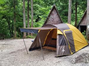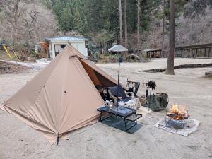 日帰りキャンプやテント泊を楽しめるキャンプ場では、レンタルスペース「川の音(かわのね)」と貸切露天風呂をご利用可能。
