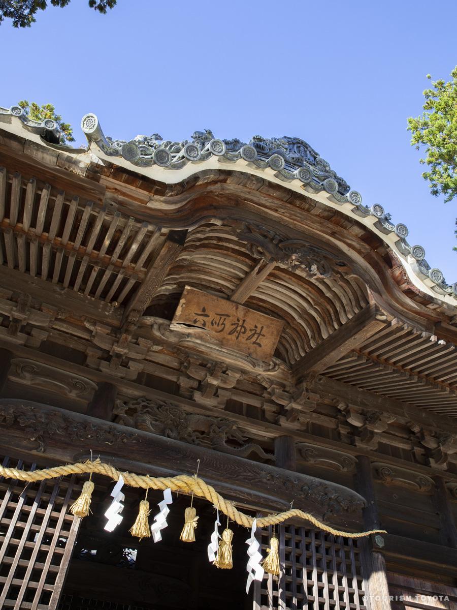 六所神社是一处神道教圣地,尽管具体修建时间不详,但其历史可上溯至松平亲氏(?-1394?)时期。松平亲氏是松平家族的始祖,从14世纪晚期开始统治松平乡及周边地区。传说六所山顶的神社由松平亲氏建造,旨在祈盼社中供奉的神明保佑居住在山谷里的家人。不过六所山本身自古以来就被视为神明居住的圣地而得到人们崇拜。今天,六所神社的“上宫”仍然矗立于山巅,“下宫”则座落在西北山谷里。