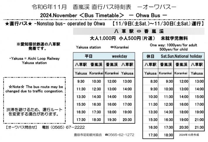 直通巴士垂询:㈱OHWA足助营业所 0565-67-2222