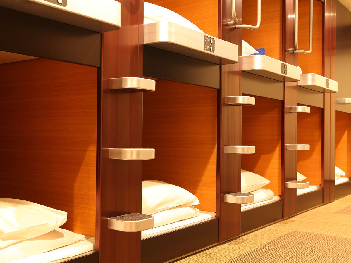 | 费用 | ◎单人房:6,500日元(不含税)~/1人 ◎双床房:12,000日元(不含税)~/2人 ◎胶囊:3,470日元(不含税)~/1人 ※ 胶囊只限男性入住 |