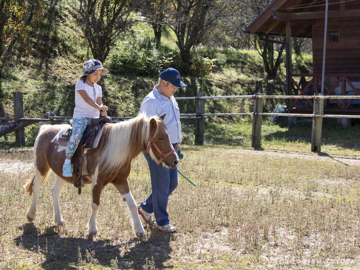 可与马、羊、小动物进行近距离接触、还可以骑在木曽马上,由工作人员牵着前行。