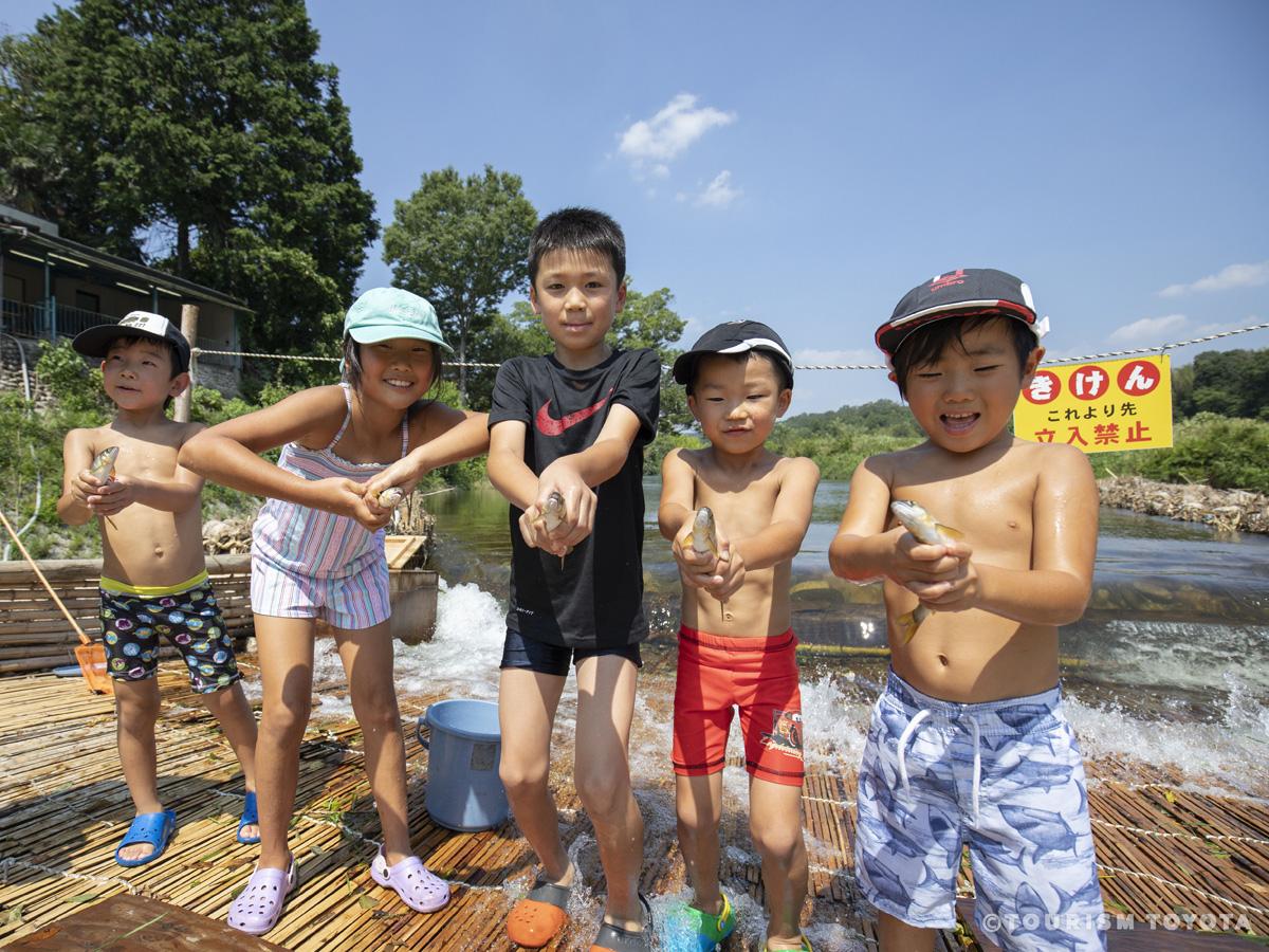 在被自然环绕的地方踏入河水中体验手抓香鱼,大人孩子都能玩的开心的鱼梁。今年也很热闹! 川…