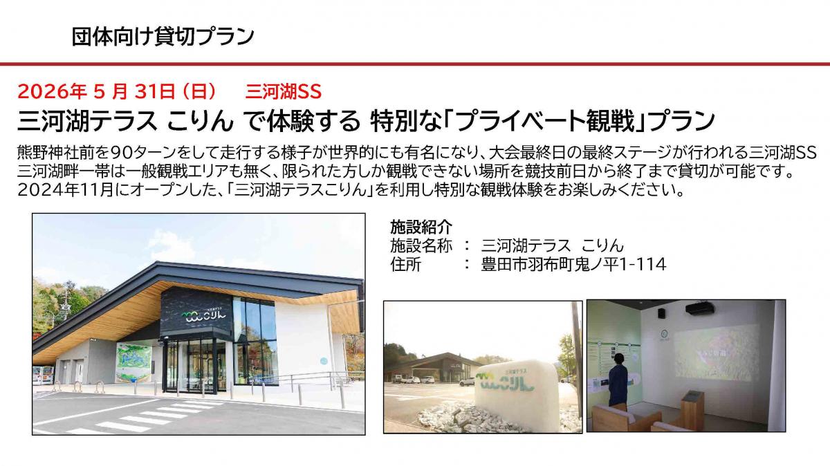 お気に入りから削除 お気に入りに登録 2025年5月31日(日) 三河湖SS 団体貸切プランのご提案 資料 (PDF: 2.13MB) お申込み方法 申込書に所定要項をご記入の上、Eメールにてお申込みください。 申し込み先メールアドレス 申込書 (PDF: 204.12KB) 募集要項 (PDF: 561.73KB) WRITERこの記事を書いた人 蜷川 新悟 愛知県出身。旅行会社で約15年働いた後、豊田にやってきました。豊田の広さに驚きながらあちこちに出没しています。 その他のコラムを読む