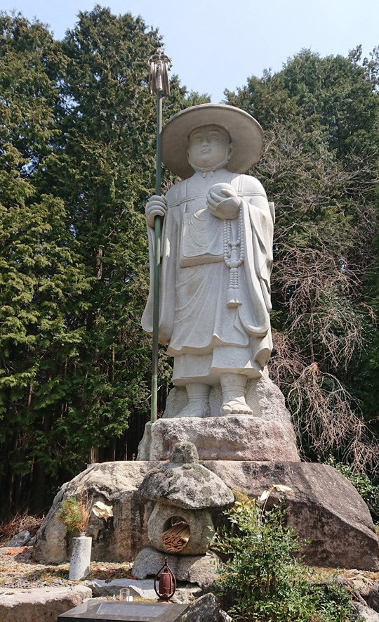 弘法信仰の盛んだったこの地に、地元有志の手により昭和63年に建てられました。大師23歳の時の姿を模し、「何か〇〇しますから」と念願すると必ず成就されるといわれています。