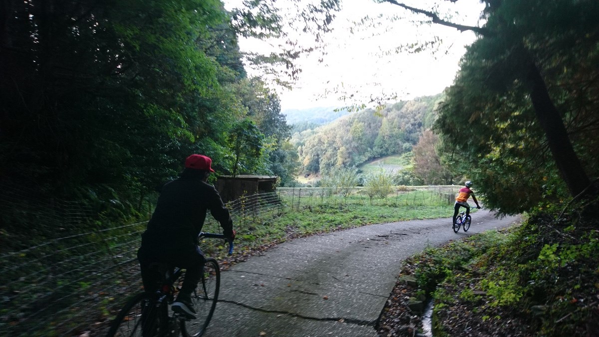 ▲川に沿って下り坂を走ります。滑りやすいので要注意!