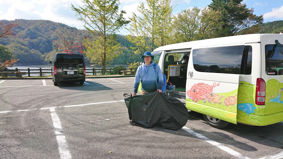 ▲バスには、輪行バッグに入れると自転車を積むことができます。