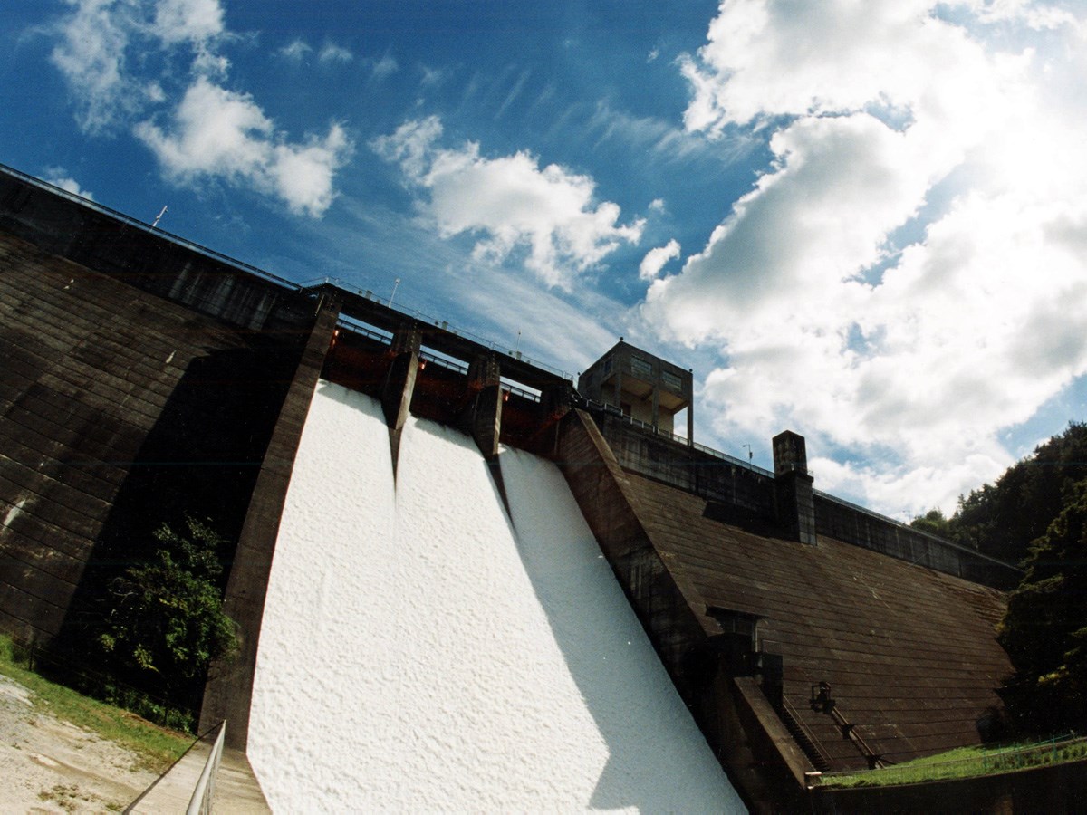 ▲羽布ダムの放水。運が良ければ見られるかも?ダムの堰堤も自転車で走行できますよ♪ ※写真は参考例です。