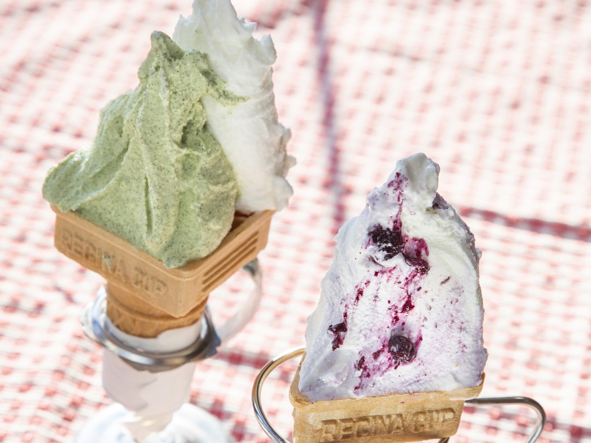 ここでは、ウィンナーづくりやロースハムづくりの体験が人気!体験だけでなく、すぐに食べられる特製ジェラートやホットドッグ、お土産の購入もできます。ひと足早い休憩ですが、絶品ジェラートをいただきました!季節によっては山わさびや下山米といった限定フレーバーもあるそうです♪