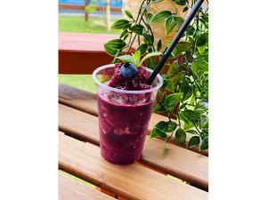 今シーズンのブルーベリー狩りは終わってしまいましたが、カフェではブルーベリースムージーなどのスイーツを楽しめる他、お土産用にジャムやお酢、パック詰めのブルーベリーの販売もあります。