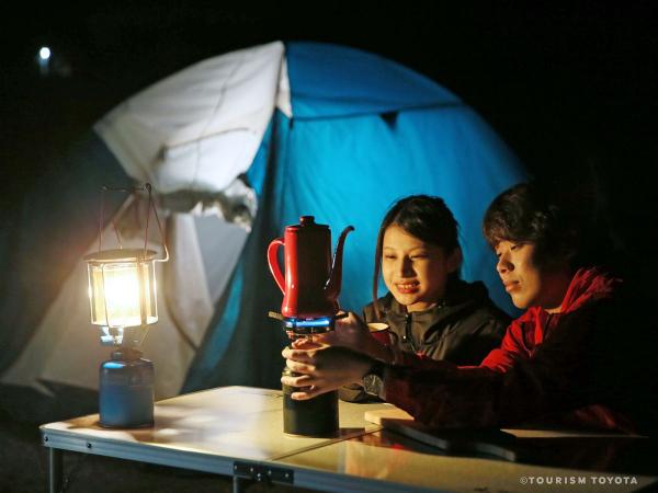 今回は、デイキャンプにはなかった宿泊もしました。静かな夜の高原でランタンの優しい光と温かいコーヒーで語り合うのは非日常を味わえますよ!また、旭高原は星空も美しいのでランタンの灯を落として星空観察もオススメですよ!