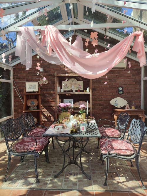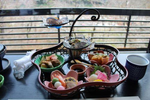 水源公園の桜を見下ろすお店、さくら亭での昼食をおすすめします。お店に入ると桜の飾りが迎えてくれ、春の雰囲気に包まれます。春には、料理も花見団子から桜の形をしたお皿まで、すべてに季節を感じることができます。