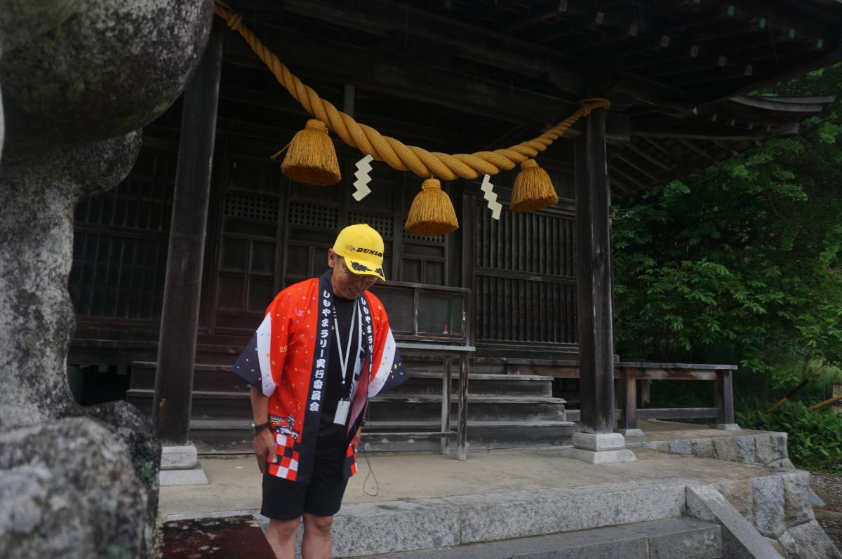 実際に現地を見てみると、熊野神社手前でブレーキを目いっぱいかけたタイヤ痕や、ボディを擦ってしまい道路を削ってしまった跡などラリーの激しさを伝わります。