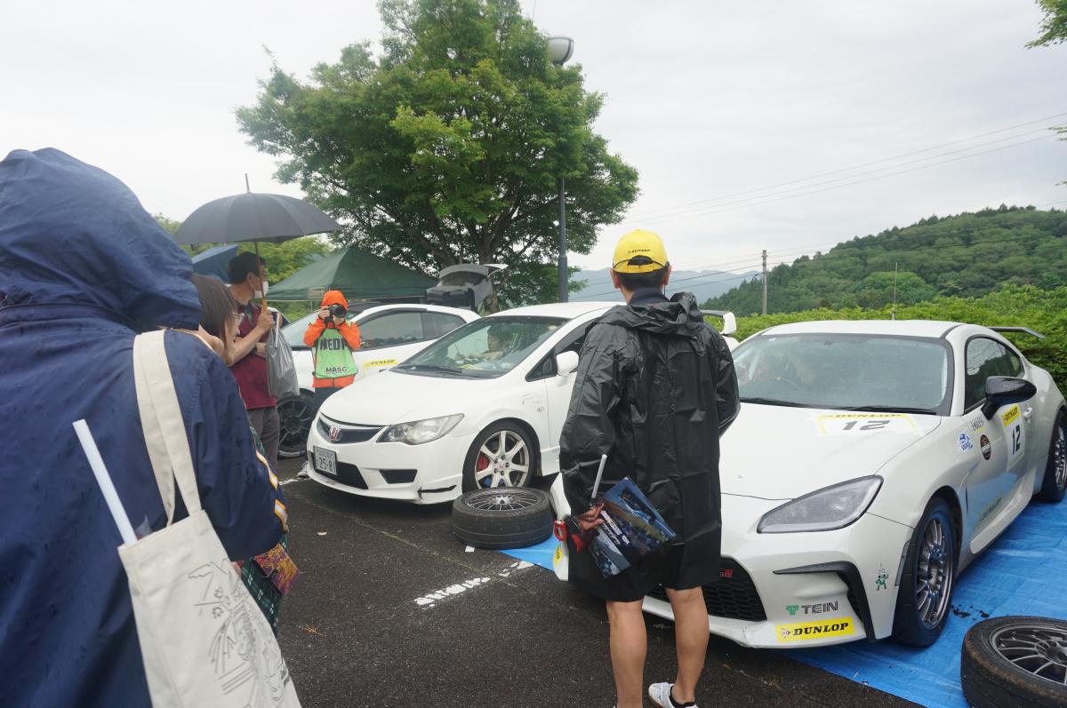 「まどいの丘」は、翌日のしもやまラリーに向けて選手やスタッフが車の整備や作戦会議を開いており、当日の一般の方の入場はできません。