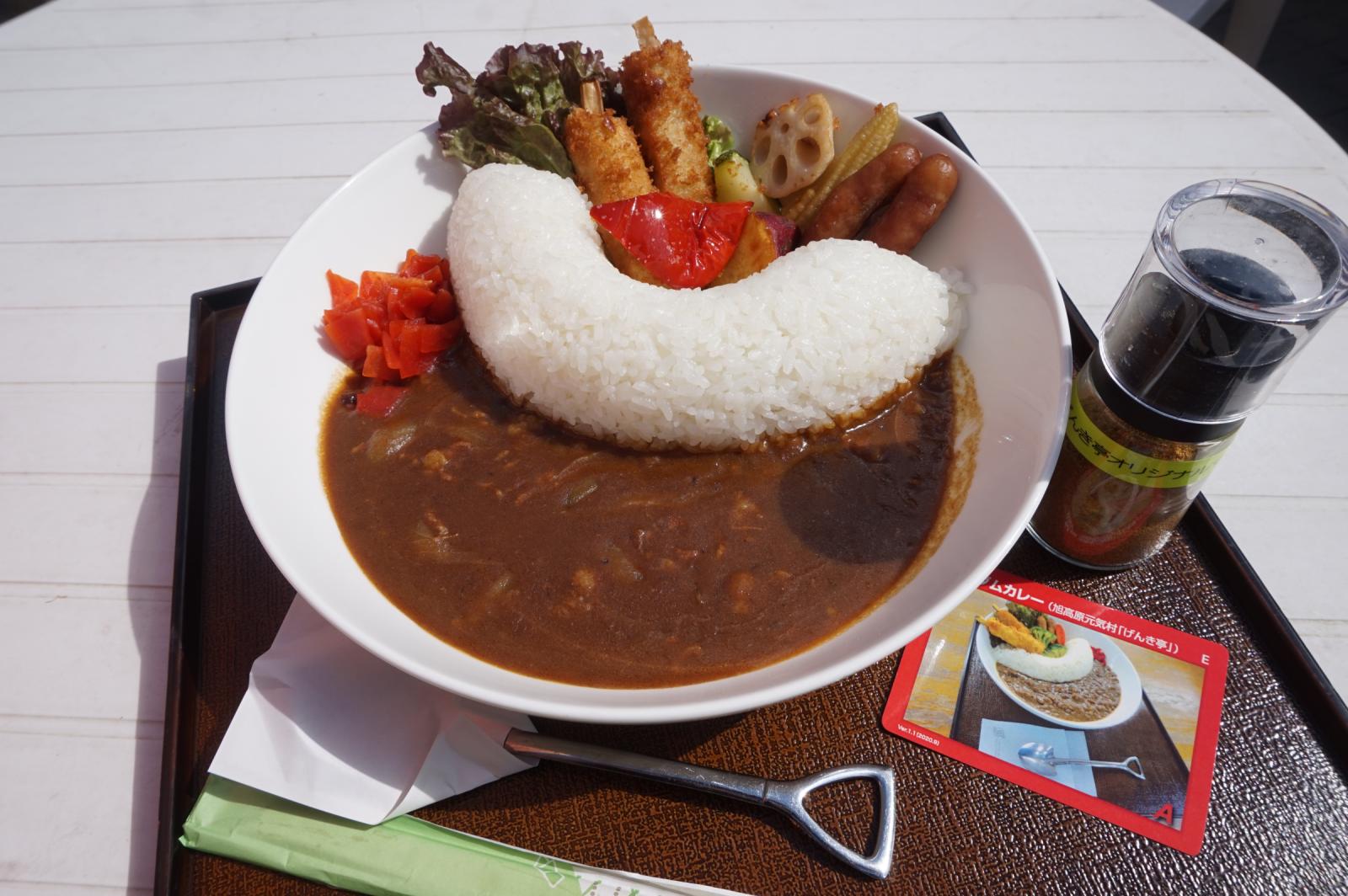 I’d like to recommend Asahi Highland in Asahi Yawatatown, Toyota city. You can enjoy a lot of things. For example, eating, camping, sports, and so on! If you like winter, you can enjoy sledding at Asahi Highland. You will probably get hungry after playing. You can eat many dishes there! My recommendation is the dam curry. The curry looks like water, and the rice looks like the dam wall! It’s so delicious. You can eat the curry on the terrace outside. The view from there is beautiful and relaxing.