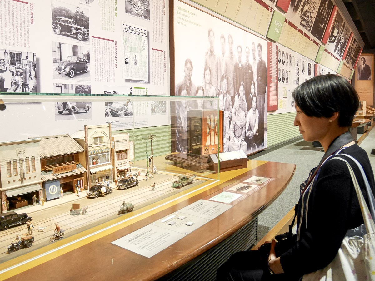 Along a section of wall, old styled wirelesses are set up beside scale dioramas displaying various scenes showing Kiichiro Toyoda and his team overcoming production and technical problems. While visitors enjoy the scenes in miniature, they can also hear the fascinating story as narrated from the accompanying contemporary radio set.