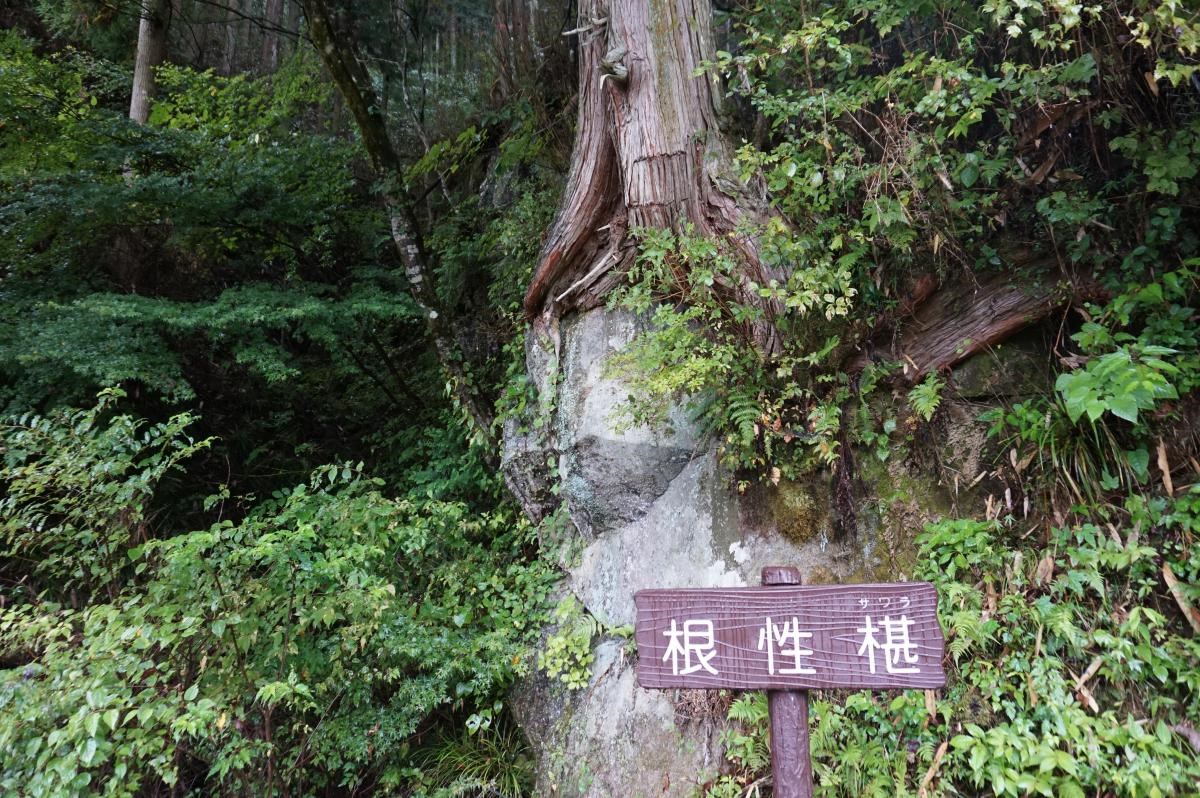 A sawara cypress grows high from a crack in the boulder. Amazement at the stalwart lifeforce of the local nature!