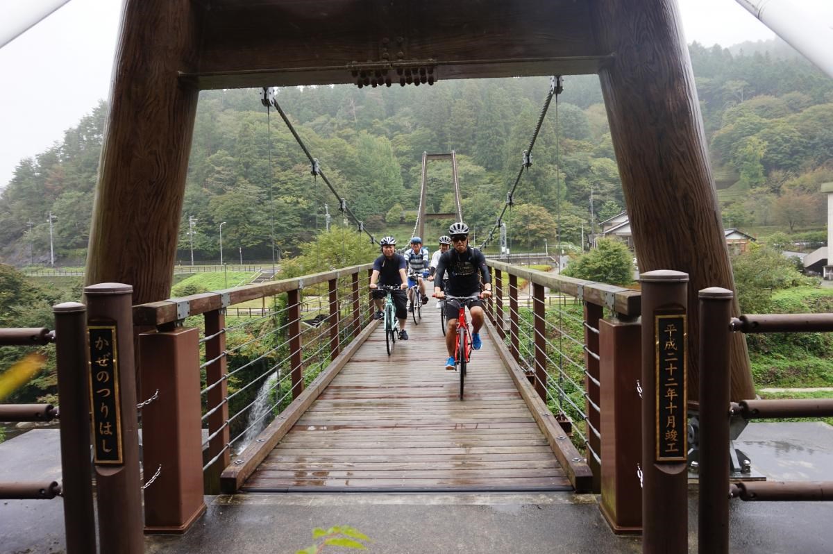 The Kaze-no-Tsuribashi Bridge extends for 86 meters across the Naguragawa River. Widely known as a beautiful spot for autumn leaves.