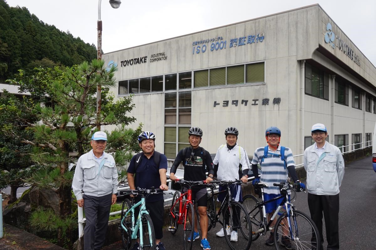 ▲Not exactly a sightseeing spot, but during our travel we came upon the factory plant of Toyotake, that cuts and sews the linings of car seats. This company has a mountain bike department, brought up to help vitalize the local economy. According to the president, Mr. Yokota, "Inabu is great in the morning! Running through the clear air while being bathed by the dawn's sunlight is a precious experience". The boasting about Inabu and small talk about bicycles lasted for quite a while!