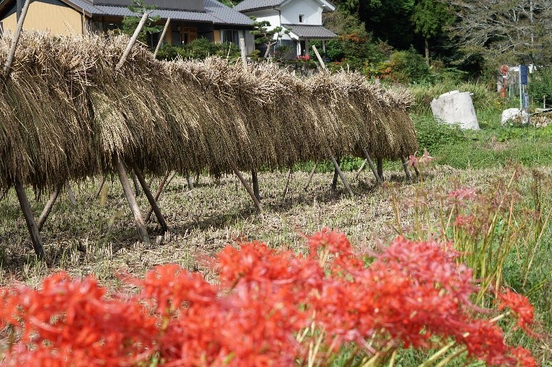 Spider lilies and racks for rice drying. The gorgeous countryside sights of Toyota-City go along the way.