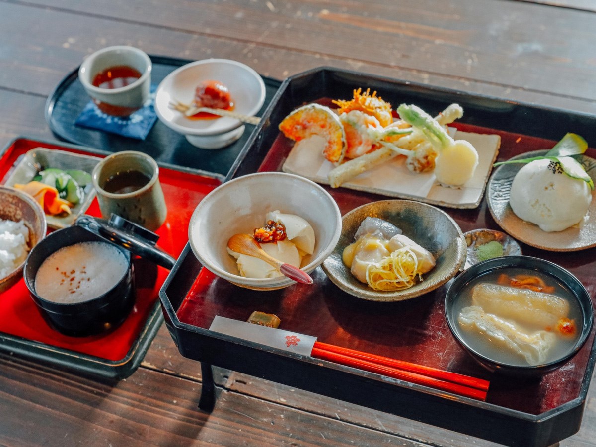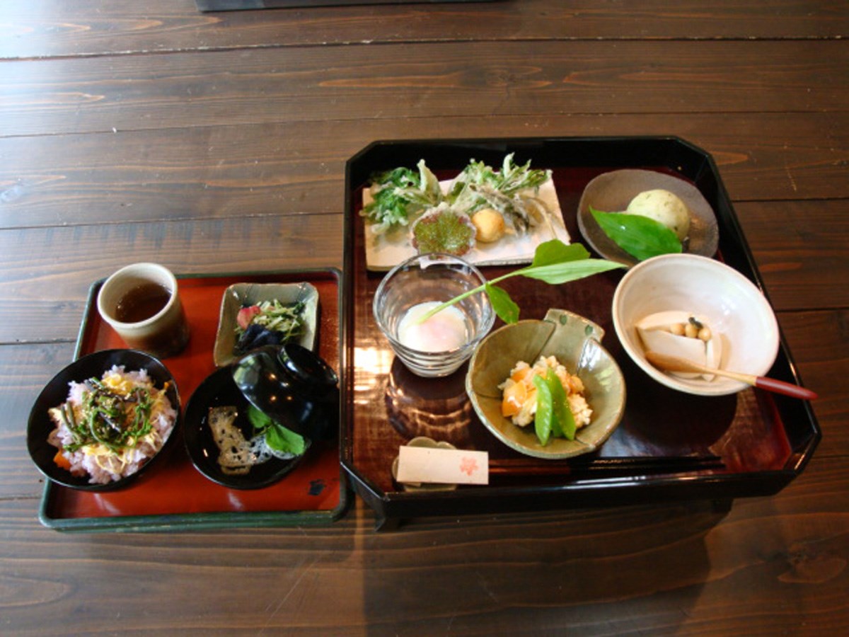 Our dishes are made with fresh, local sansai vegetables, bamboo shoots, wild sweetfish, mushrooms, mountain yam, boar, and other seasonal foods. Lean back, relax, and enjoy the taste of nature.