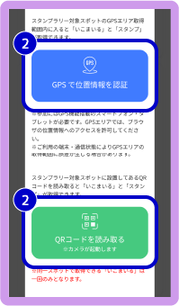 • 訪れたスポットページを選択して、「スタンプをゲット」をタップ