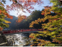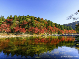 全国有数の紅葉の名所として約4000本のもみじが彩りを見せる香嵐渓。足助川をはさんで、かつての宿場を思わせる古い町並みの散策もできます。