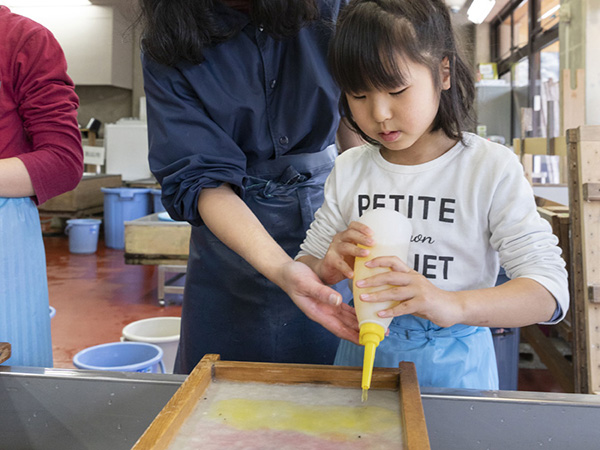 小原地区特有の伝統工芸「小原和紙」の魅力を体験できる工房。「絵すき」「字すき」「葉すき」「うちわ」「壁掛け」などを制作できます。