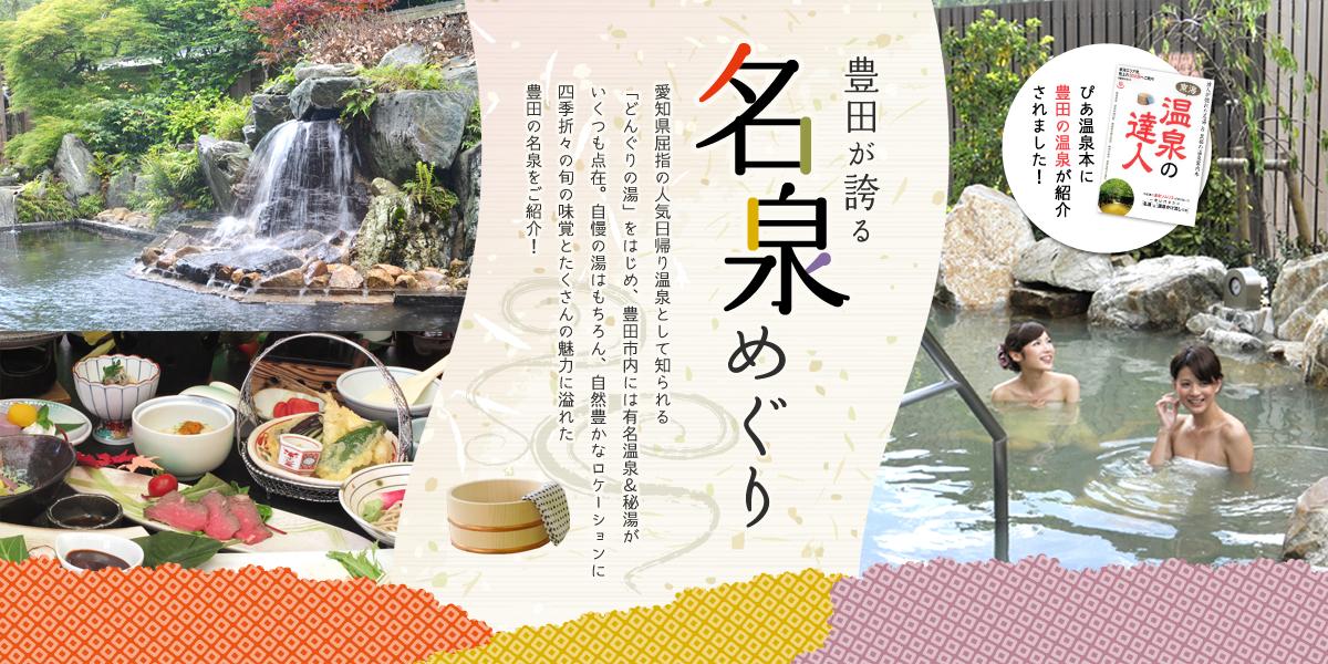 自慢の湯はもちろん、自然豊かなロケーションに四季折々の旬の味覚とたくさんの魅力にあふれた豊田の名泉をご紹介!