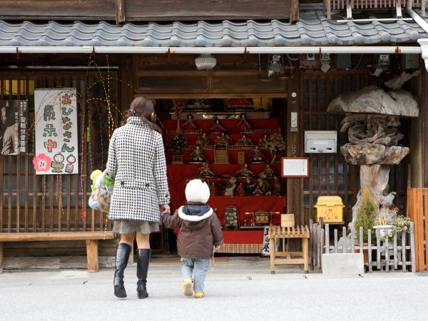 - 아스케의 전통거리에 있는 민가나 상가에 오래전 부터 전해져 오고 있는 오히나상 야토비나(흙으로 만든 인형)을 현관문 앞이나 상점안에 화려하게 장식해 행인들에게 거리 산책의 즐거움을 주기 위해 시작한 아스케의 풍경입니다.