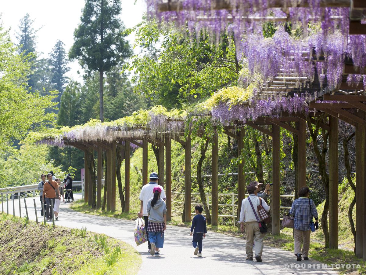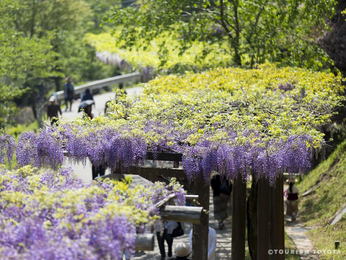 약370m에 걸쳐 설치 되어있는 등나무 산책로. 4월 하순부터 5월 상순까지 요염하고 아름다운 등나무 꽃이 만들어내는 경치를 볼 수 있습니다. 등나무꽃이 만개하는 골든위크 기간에는 "후지 축제"가 개최됩니다.