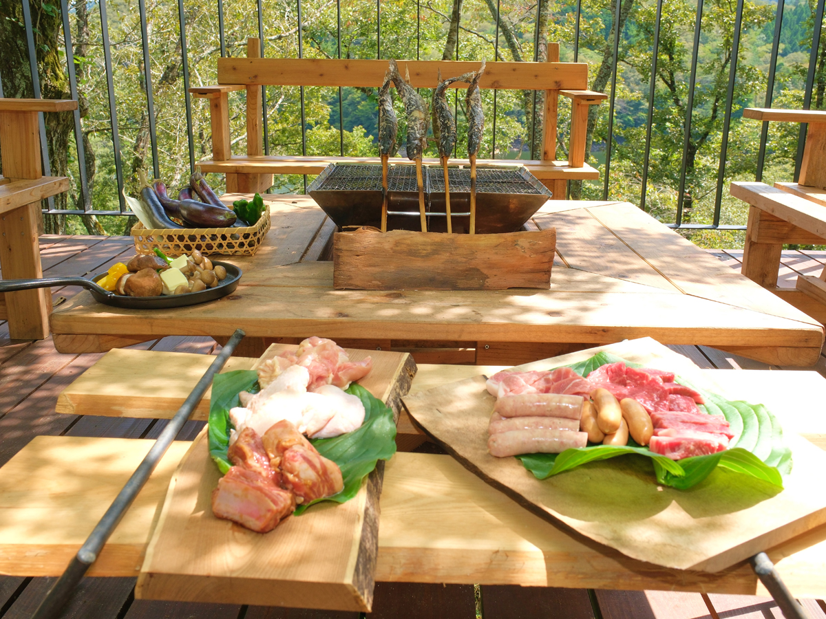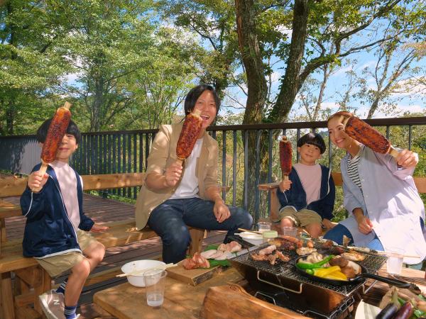| 料金 | 【利用料金】 ・大人 330円 ・子供(3~11歳) 220円 【テラスバーベキュー】 3,300円/ブース (七輪、網、トング、着火剤、炭2kg) 【手ぶらでバーベキュー 厳選食材セット】 ・食材セット 3,300円~/人 (肉、魚介類、旬の野菜、五平餅、活けニジマスなど 各種調味料、紙皿、箸、トング) ・ジビエ付き 4,400円~/人 ※ 飲み物は含まれません。持ち込み、または店内販売があります。 |