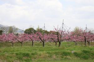 ・農家さんの大切な桃畑です。畑の中には入らないでください。