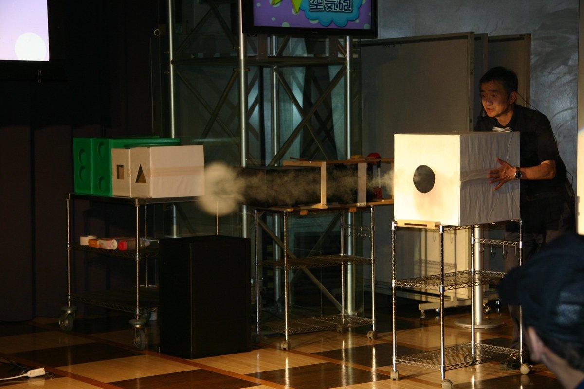 テレビなどでよく見る「空気砲」。煙をいれるとどんな形をしているのでしょう?穴を三角や四角にするとどんな形になるのでしょう?ショーのなかで紹介します。また、当館特製の巨大空気砲もお見せします。