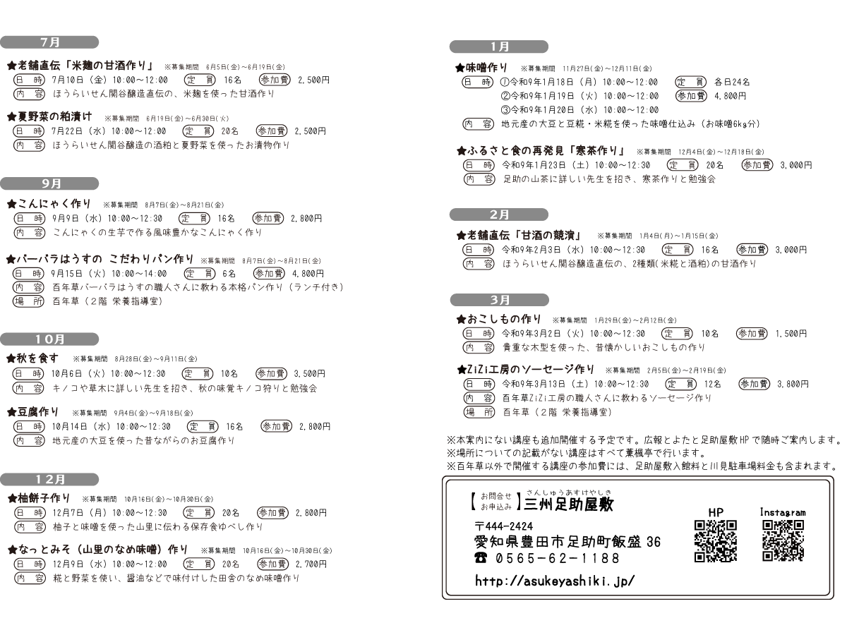 三州足助屋敷「食の学校」公式サイト