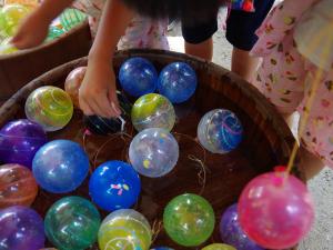 縁日遊びは足助屋敷受付で購入した「遊びチケット」を使うことで遊ぶことが出来ます。遊びはチケット1枚で1プレイできます。当日足助屋敷敷地内で販売しているお面や風船、屋台などにも遊びチケット1枚を100円として使う事が出来ます。
