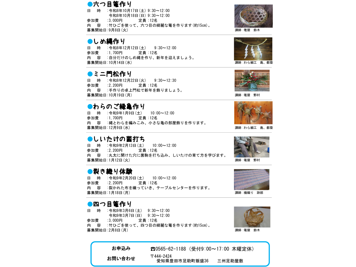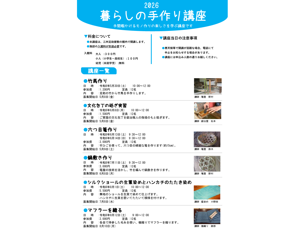 三州足助屋敷「暮らしの手作り講座」公式サイト