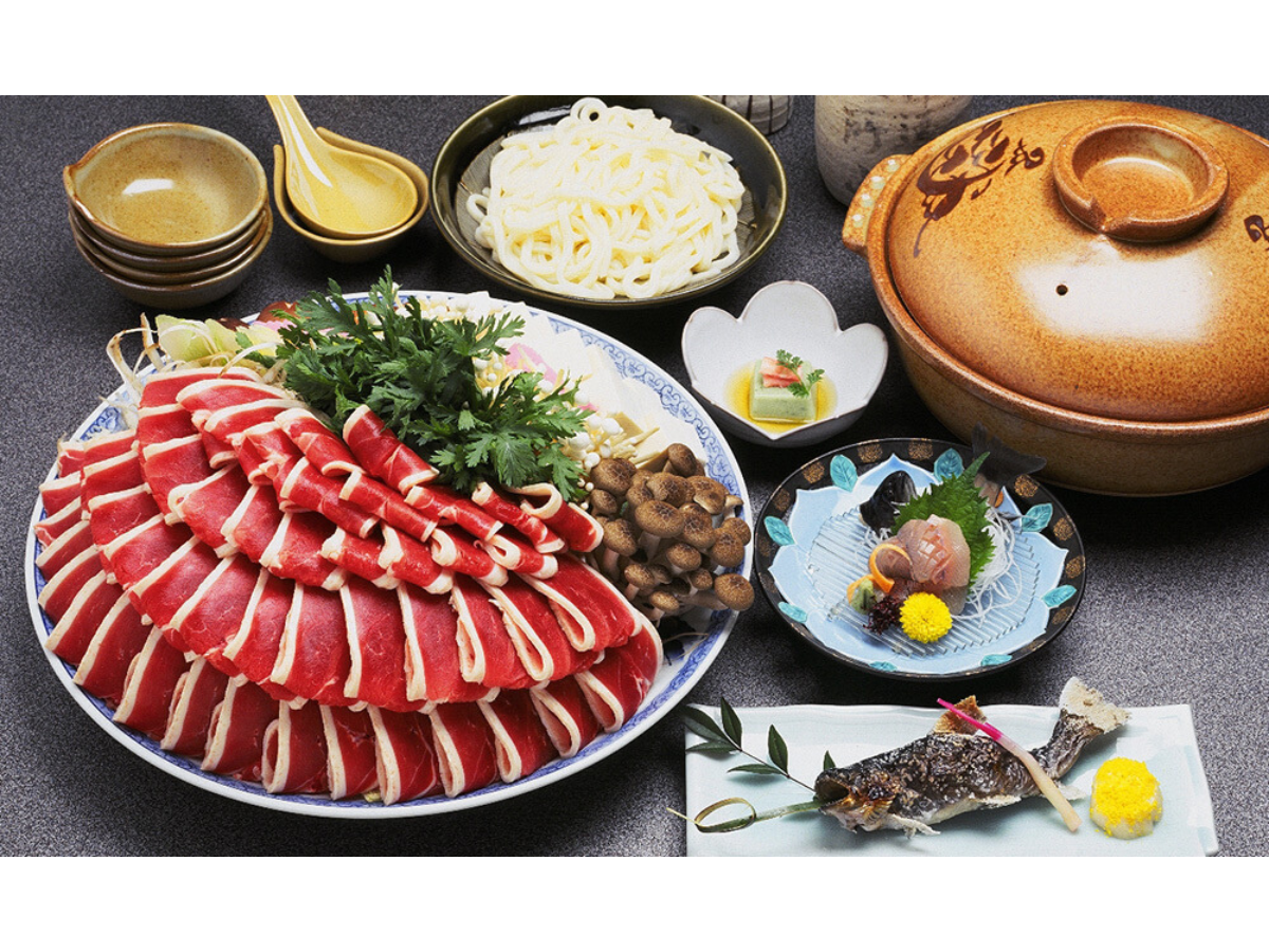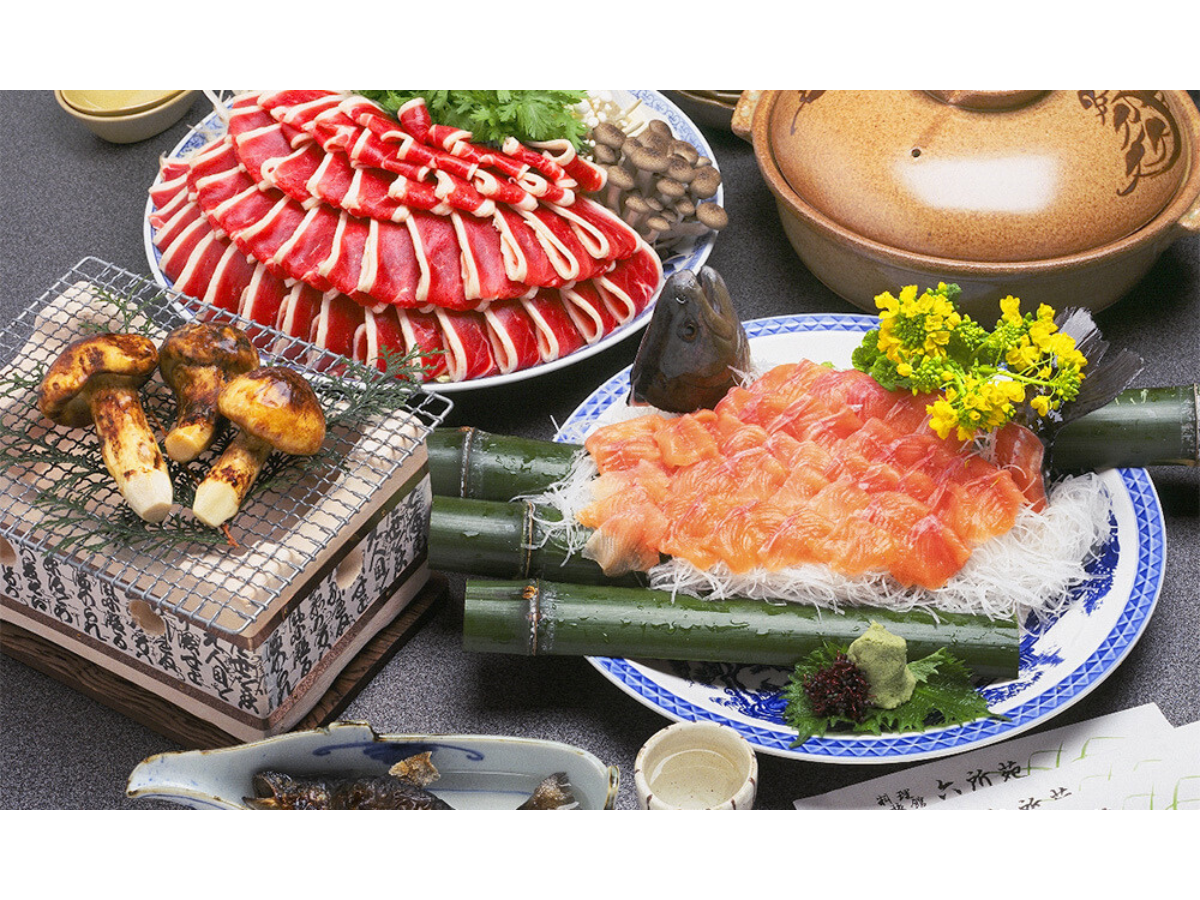 新鮮なジビエ素材を使った味自慢のお料理を、ぜひご賞味ください。「とれたて」「できたて」をモットーに、お客様にご満足いただけるおもてなしを提供しております。当館自慢の「ジビエ鍋料理」と自然の中で楽しむ「ジビエバーベキュー」も、お楽しみいただけます。豊かな自然環境で育まれたジビエの鮮度と旨味を最大限に引き出し、繊細な調理技術でご提供いたします。一つ一つの料理には、シェフの心意気と情熱が込められています。ジビエの深い味わいと共に、贅沢な時間をお過ごしください。