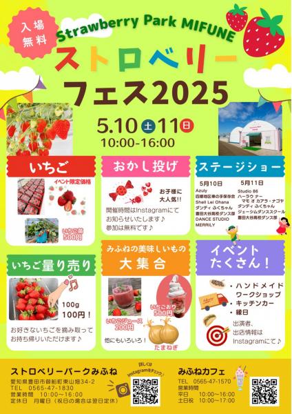 | 電話番号 | 0565-47-1830(ストロベリーパークみふね) 0565-47-1570(みふねカフェ) |