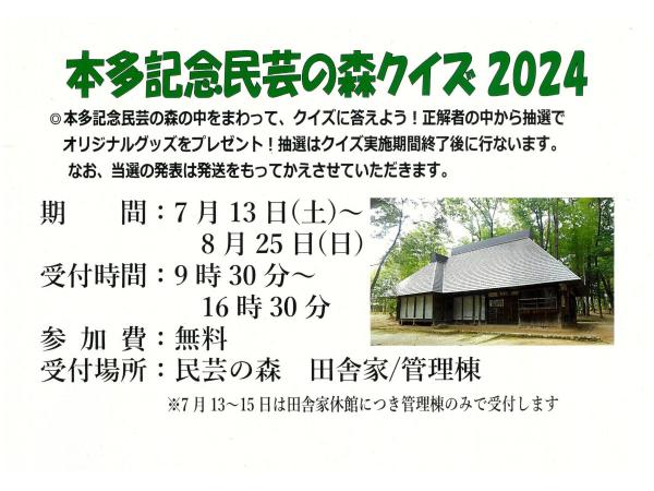 ◆本多記念民芸の森クイズ2024