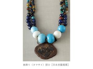 様が魅力的な刀掛け帯、アイヌ玉の首飾り、儀礼の際に用いられる木製のイクパスイなど、アイヌの手仕事には細部にまで