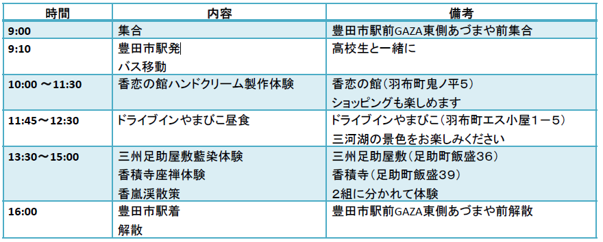 | 所在地 | 愛知県豊田市喜多町1-140 (集合・解散場所) |