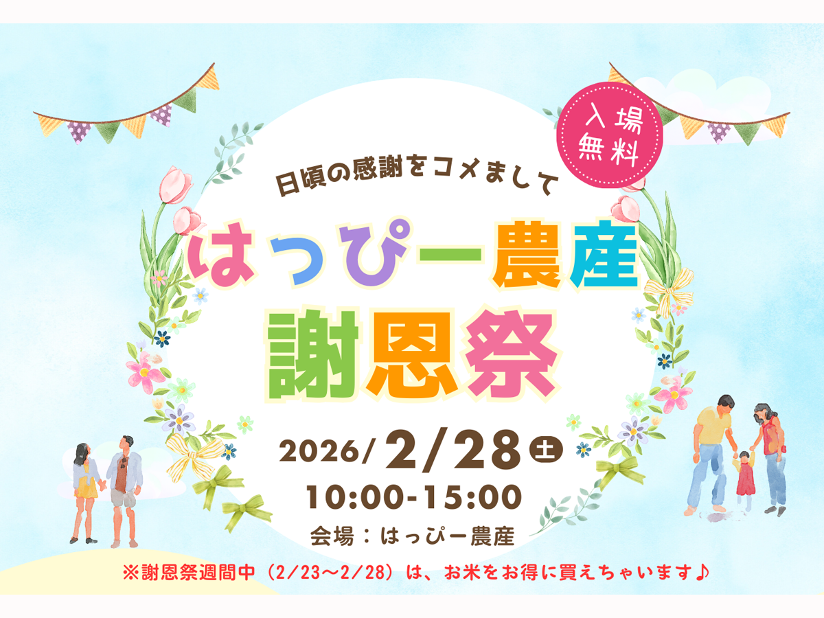 謝恩祭週間中(2/23~2/28)は、特別に『にこまる』『大地の風』の玄米30㎏が謝恩祭価格でお求めいただけますよ!