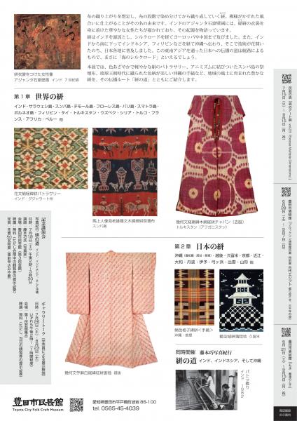 本展では、色あざやかで軽やかな絹のパトラサリー、アニミズムに結びついたスンバ島の祭壇布、琉球王朝時代に織られた色柄が美しい沖縄の手縞など、