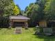 県道大沼足助線の脇にたつ孫根城跡の解説看板と、城跡までのルート上にある春日神社。分かれ道付近には、矢印看板が設置されているので安心です。