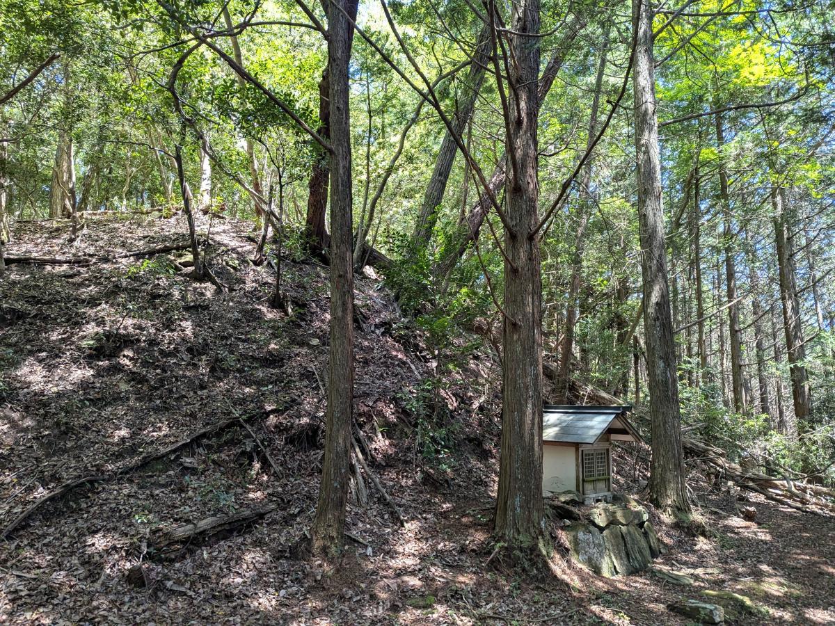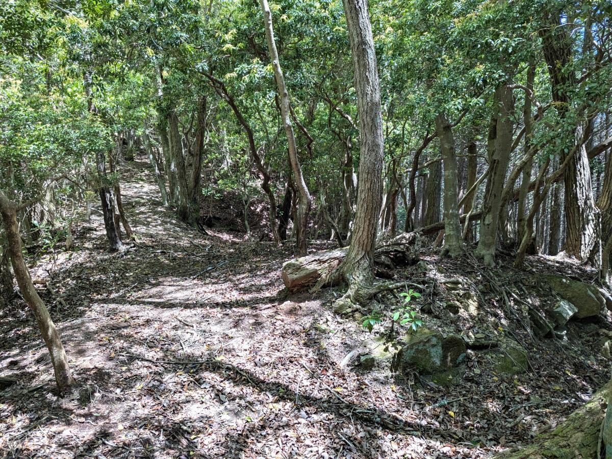 曲輪Ⅰまでのルートは、比較的平坦面が多く高低差は少ないものの、落ち葉や枯れ枝があるので足元は注意が必要です。