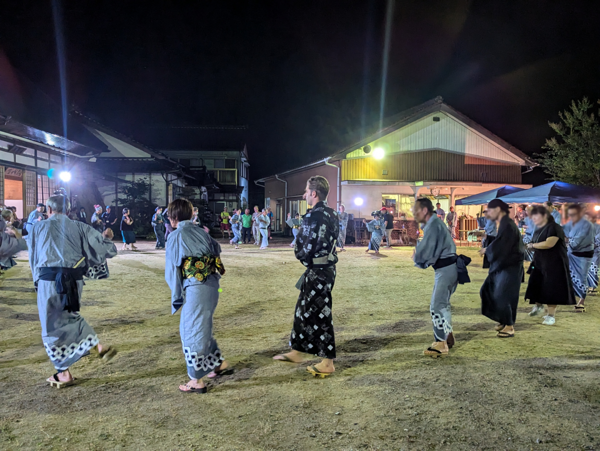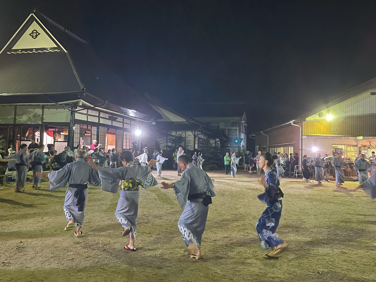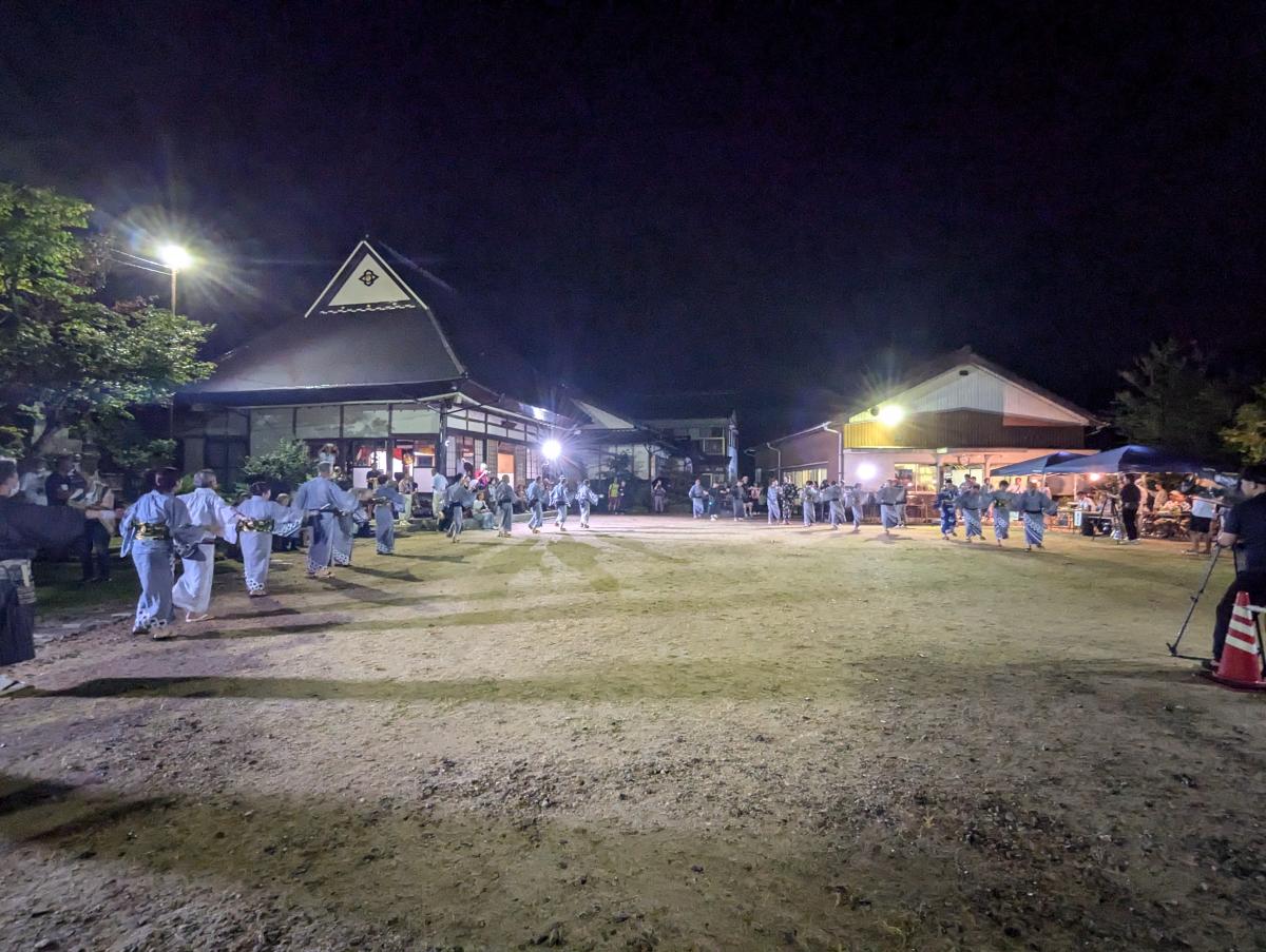 夜念仏が終わると、歌い手である「音頭とり」の歌に合わせ、踊り手も「はやしことば」を歌いながら盆踊りを踊ります。