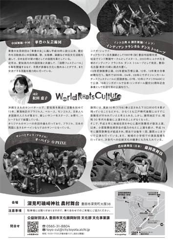 | 関連サイト | 豊田市文化振興財団 公式サイト「農村舞台アートプロジェクト2025「World Roots Culture in Fujioka -民族衣装と伝統舞踊が織りなす華やかなステージ-」」詳細ページ |