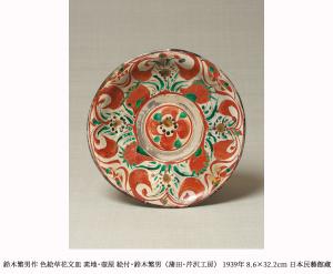 柳宗悦の唯一の内弟子である鈴木繁男(1914-2003)は、柳にその非凡な才能を認められて1935年に入門し、工芸や直観について厳しく教育されました。鈴木による仕事は漆絵、陶磁器、装幀など多岐にわたりますが、特筆すべきは雑誌『工藝』の装幀でしょう。一つひとつ和紙に漆で描かれた表紙は、多くの民藝の関係者や読者を驚かせました。