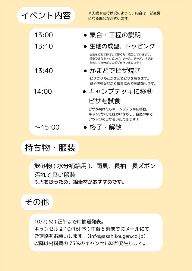 | 料金 | 【参加費】500円(3歳以上) 【材料費】2,500円(マルゲリータピザ2枚1セット)、追加1枚:1,250円 |