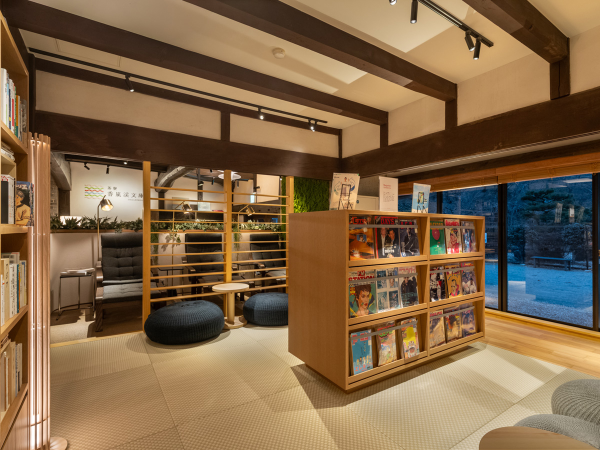 茶寮 香嵐渓文庫は、「出入り自由の終日料金制」で利用でき、約2,000冊の本に囲まれた空間を楽しむことができる施設です。本を読み、香嵐渓を歩き、また戻ってくる…そんな贅沢な一日の拠点としてご利用いただけます。